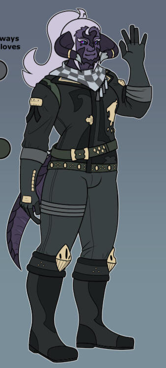 He has recently started working for House Bellaire's community centre as a head of security.Parthos is an honest man, and he prides himself in being such. Being a Taban, the truth is the only thing he was raised to speak, and thus it's an important part of his life. To him, all lies are evil, and there is no such thing as a good or even morally dubious lie.Other than his adherance to truthfulness, Parthos is passionate about cooking, cats, and protecting the innocent. He makes a living as a bodyguard, originally living and working in Ul'dah before having recently moved to Ishgard with his husband, Richard. His hiring prices are cheap, and it's quite easy to sway him into lowering them further- especially if you're sweet.For as cheerful and friendly as he is, Parthos fears judgement from others over the state of his body. His scars are the least of his problems compared to his sharp horns and the prickly scales that cover the entirety of both of his forearms. He's hurt enough people with his scales and claws to know that he's dangerous, and he's scared enough people to know that it's indimidating, so he does his best to hide his 'monstrousness' by wearing long gloves and not showing much skin.